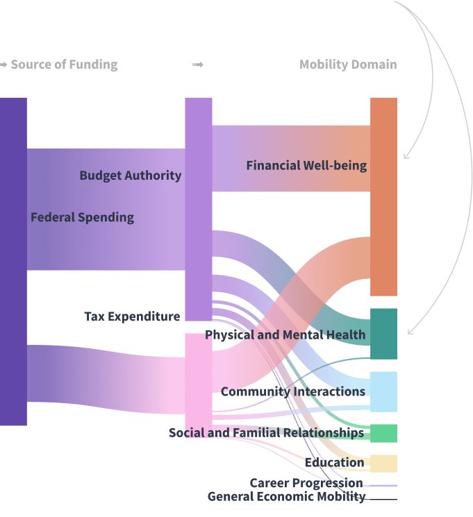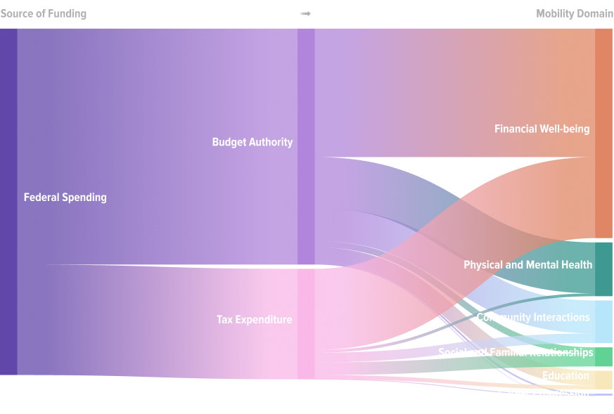 Federal funding supports the social safety net – ensuring people do not fall behind or catching them when they do. More than half of federal funding going to the Mobility Experiences supports Social Security, Medicare, and other public benefit programs.